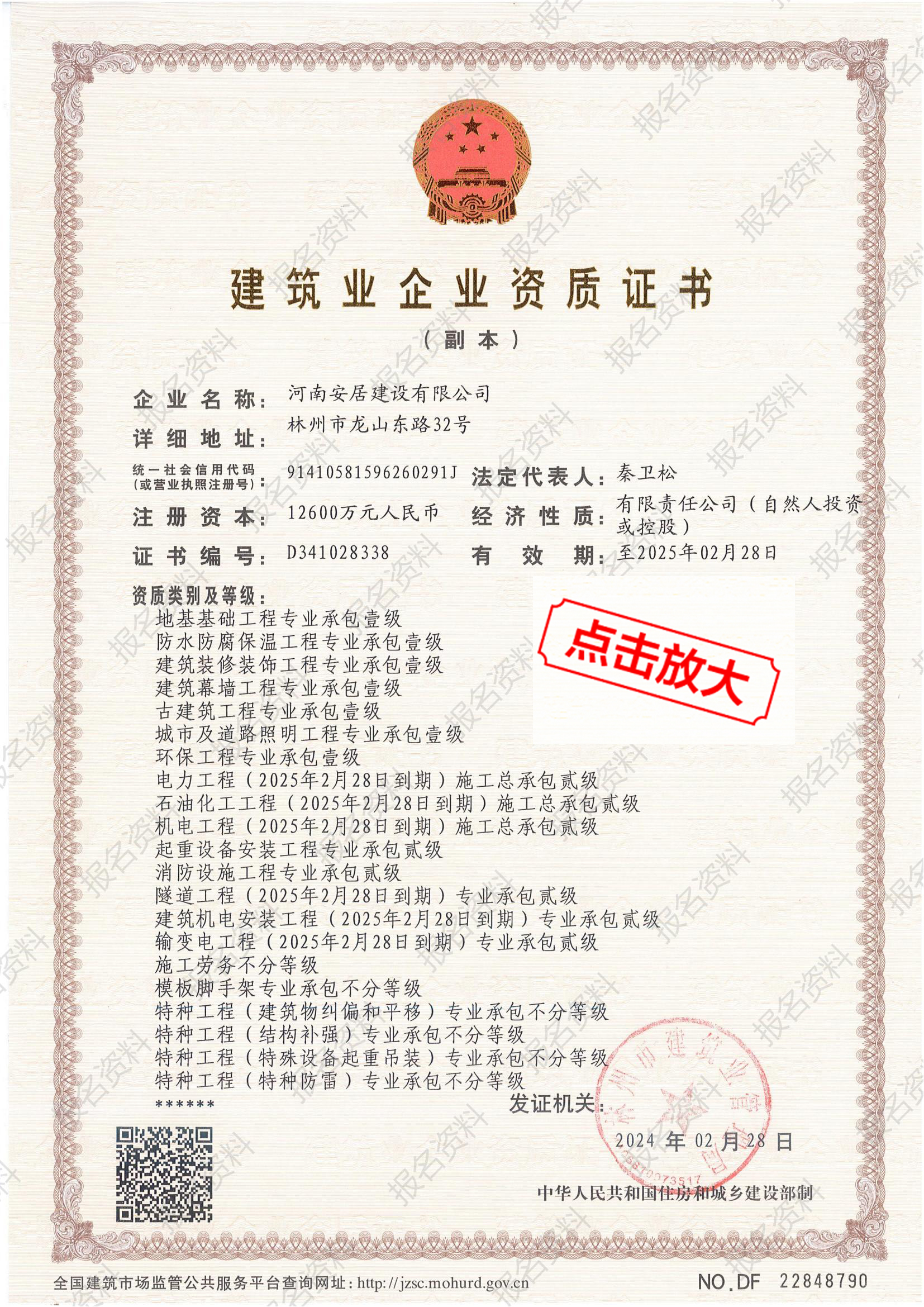 滔滔黃河哺育了中華民族拼搏向上的奮斗精神,巍巍太行造就了中原兒女的紅旗渠精神。百萬林州人下太行,鑄就了中國建筑之鄉(xiāng)響當當?shù)囊燮放啤:幽习簿咏ㄔO有限公司從誕生起血液里就流淌著紅色基因,秉承“安得廣夏千萬間,大庇天下寒士俱歡顏”的擔當精神,用鋼筋混凝土筑起了高樓大廈,也用一流品質(zhì)、家國情懷打造了安居建設的輝煌成績。公司成立于2012年,注冊資金12600萬元,公司成立至今,擁有建筑,市政施工總承包等十項一級資質(zhì);其他二級等資質(zhì)共二十余項。公司秉承質(zhì)量第一,服務為主,堅持垂直管理,從不設立分公司等分支機構(gòu)。